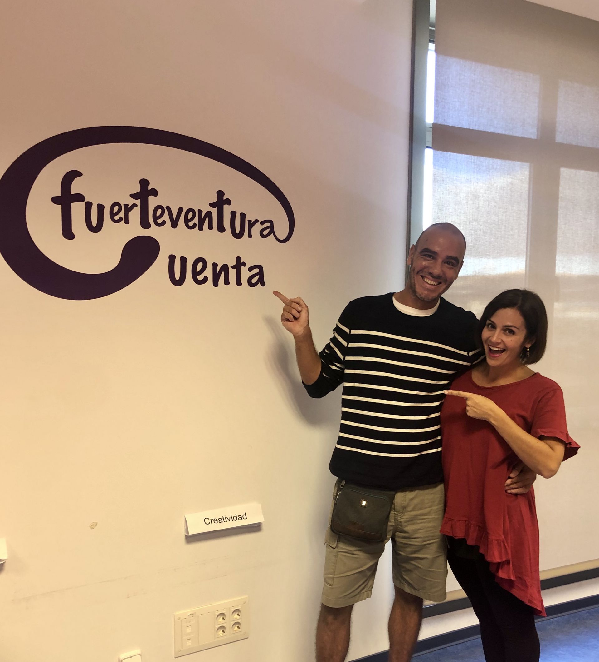 Los narradores orales y de artes escénicas, Miguel Ángel Granados e Isabel Cristina Bolívar, participaron hoy con alumnos del C.E.I.P. María Castrillo García, en Corralejo, a través del espectáculo de cuentos de Mariquita y Tontón, ¿te lo cuento otra vez?, que continuará mañana miércoles 23 y se prolongará hasta este jueves día 24 de octubre (Día de las Bibliotecas) por otros centros educativos majoreros.