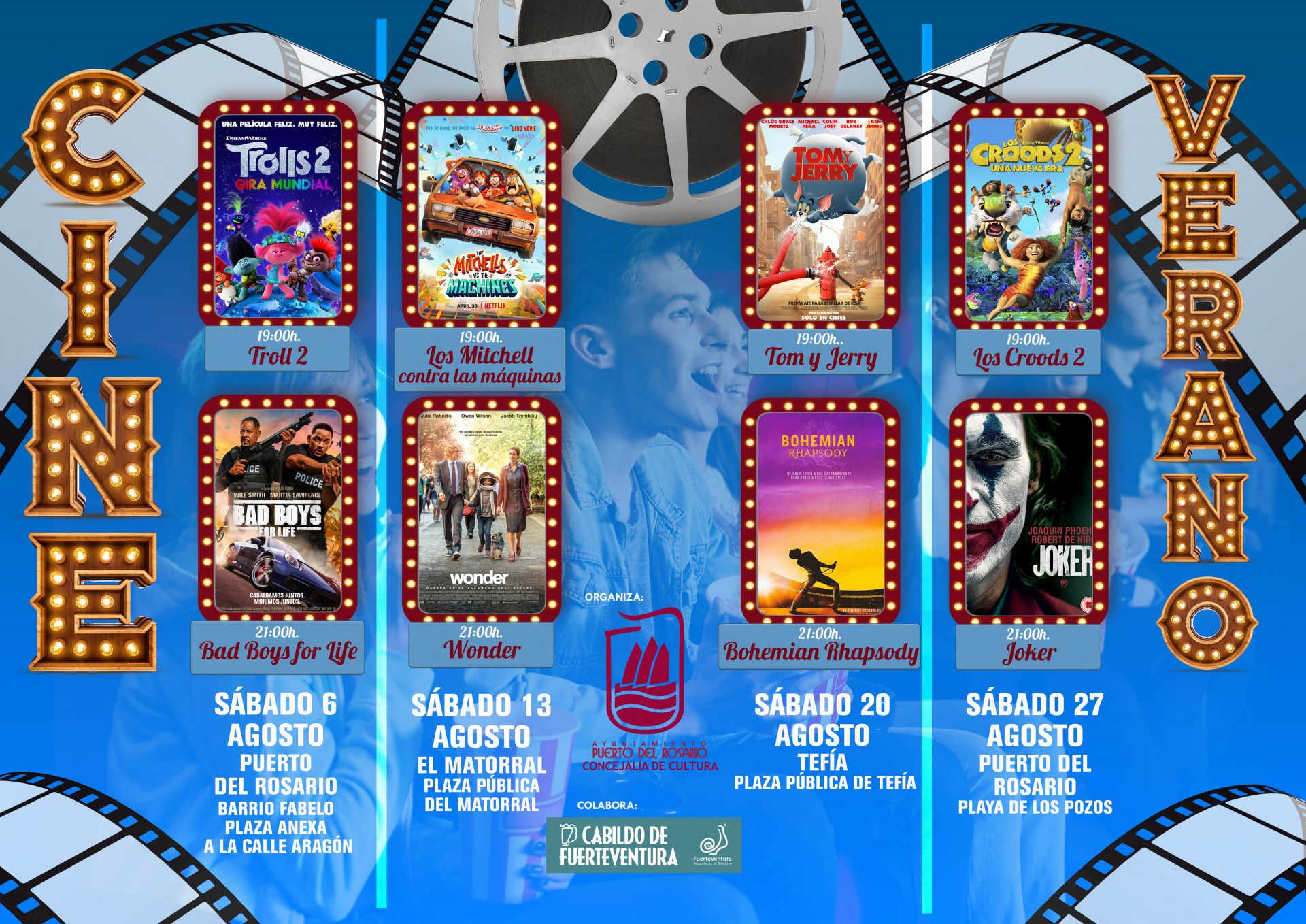 La ciudadanía podrá disfrutar, de nuevo, del Cine de Verano al aire libre que trae la Concejalía de Cultura del Ayuntamiento de Puerto del Rosario dirigida por Juan Manuel Verdugo, paradisfrutar durante los fines de semana de agosto en la capital.