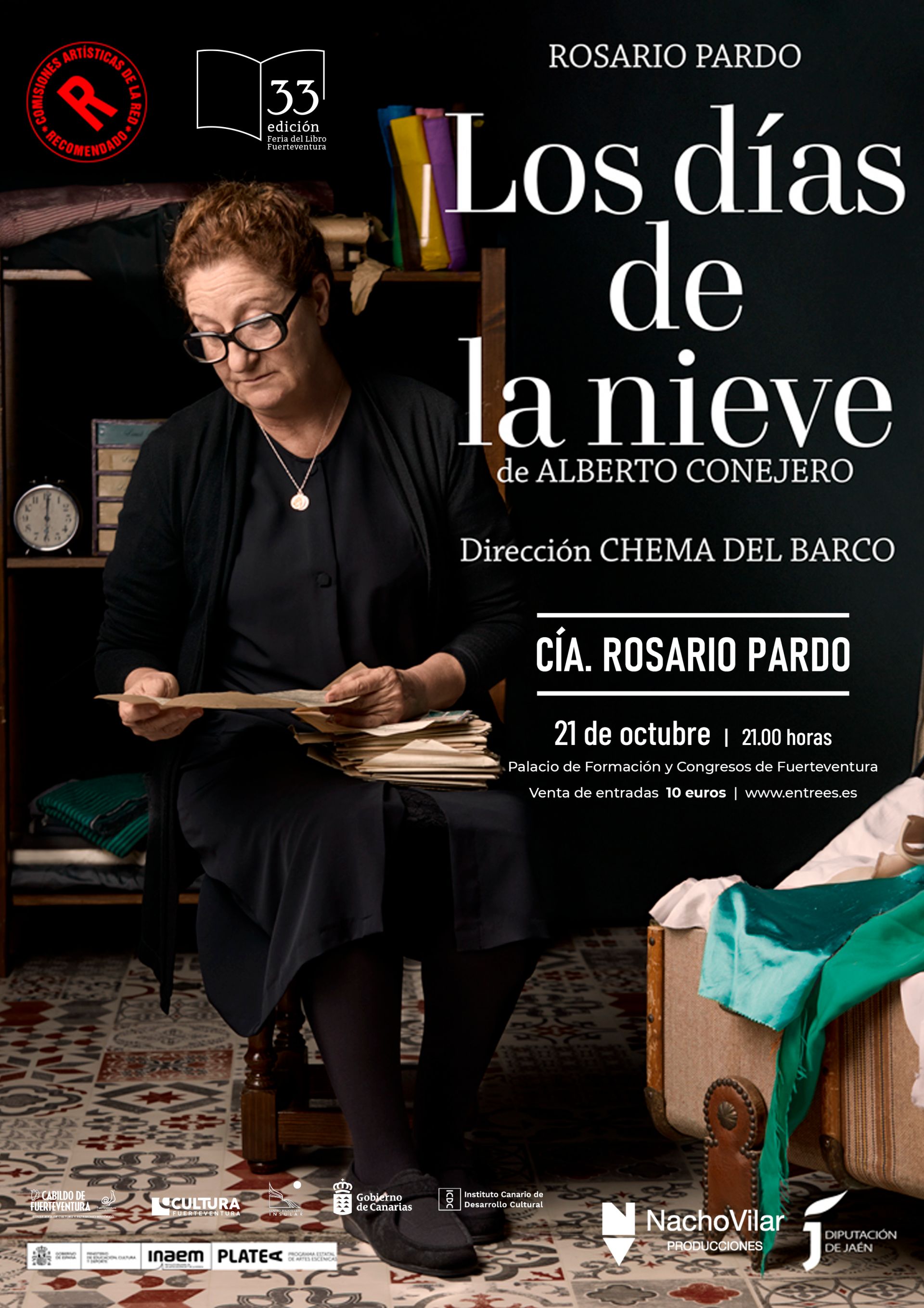 La actriz Rosario Pardo actuará el próximo 21 de octubre en el Palacio de Formación y Congresos de Fuerteventura con la obra ‘Los días de la nieve’, un texto del dramaturgo Alberto Conejero que se podrá ver en la Isla en el marco de la 33 edición de La Feria del Libro de Fuerteventura.