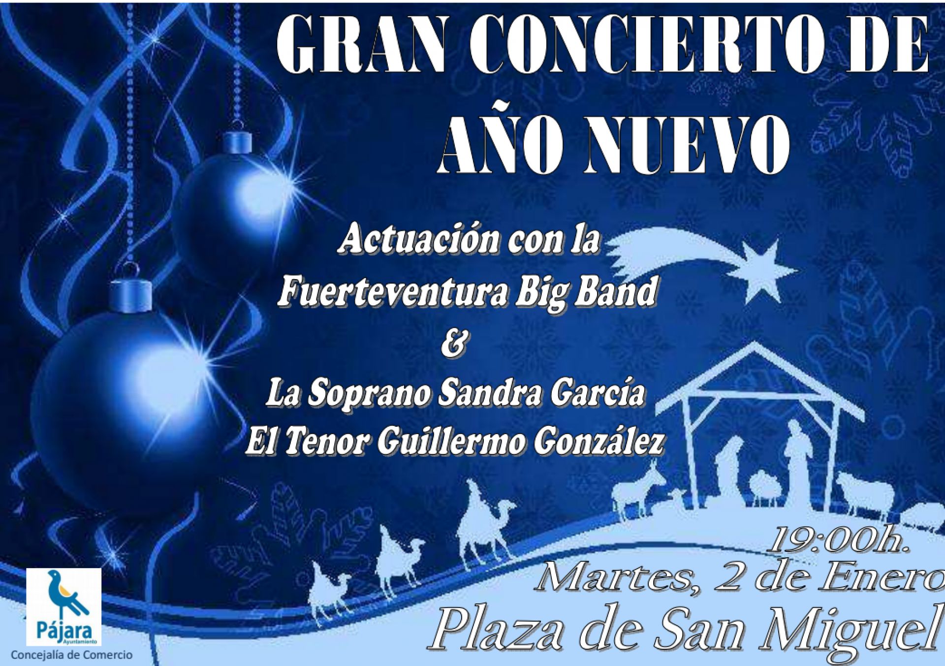 Morro Jable celebrará la llegada del 2018 con el Gran Concierto de Año Nuevo a cargo de la Fuerteventura Big Band, que tendrá lugar el martes, 2 de enero, a las 19.00 horas en la plaza San Miguel de dicha localidad, dentro de la programación navideña que organiza la Concejalía de Comercio del Ayuntamiento de Pájara, dirigida por Pilar Saavedra.