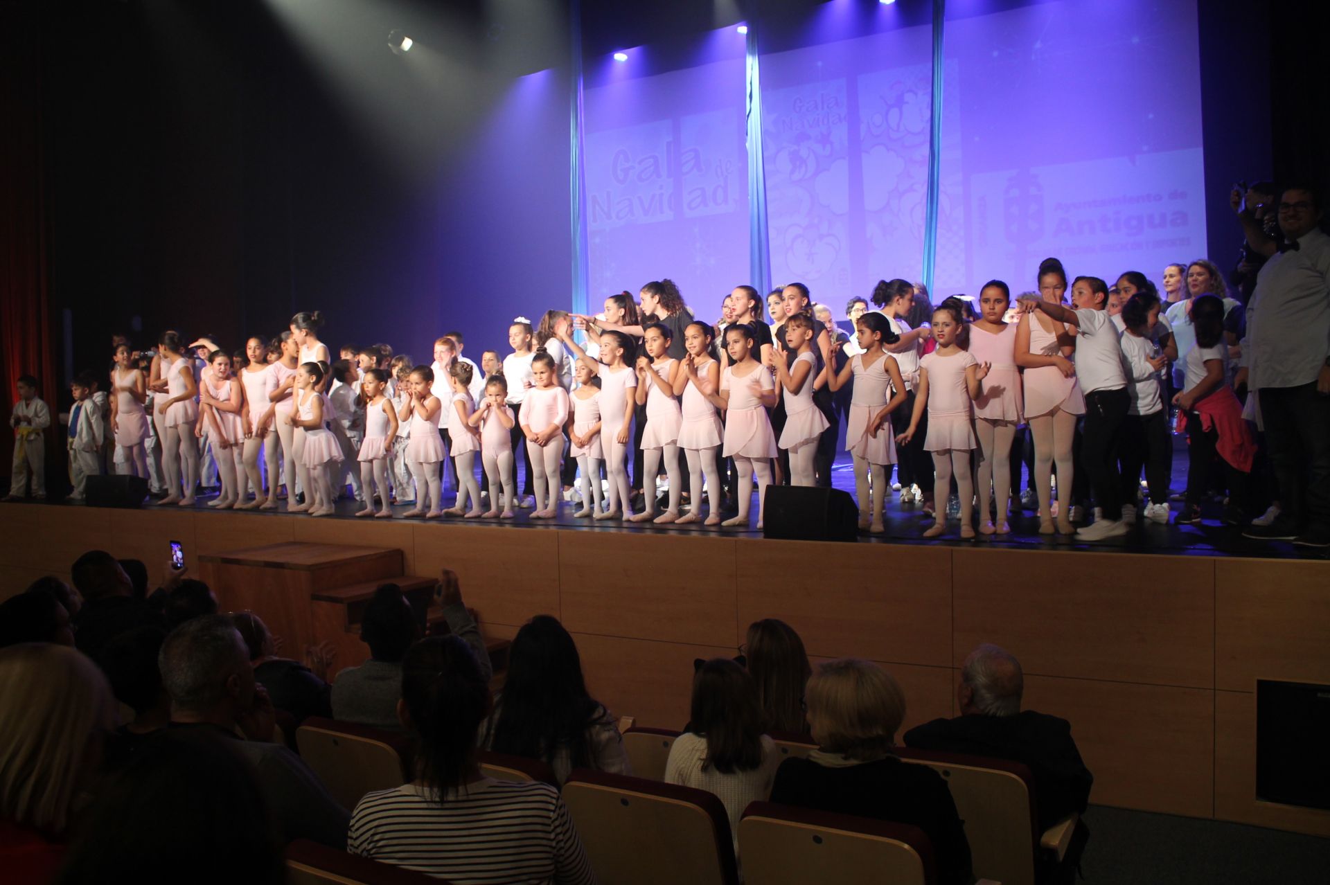 Los más pequeños componentes de Baile Moderno fueron los primeros de una Gala de Navidad, que también ofreció la exhibición de las escuelas municipales de karate de Antigua y Caleta de Fuste, con katas y kumite, el espectáculo de LQ Crew mas Dance, la belleza del ballet clásico, cuyas clases han comenzado este año a impartirse en Antigua, la energía desbordante de Zumba Kid, o del grupo Md Beat Mas Dance, las arriesgadas y sorprendentes acrobacias de las Telas Aéreas y la puesta en escena con drag como estrella sorpresa de Project One.