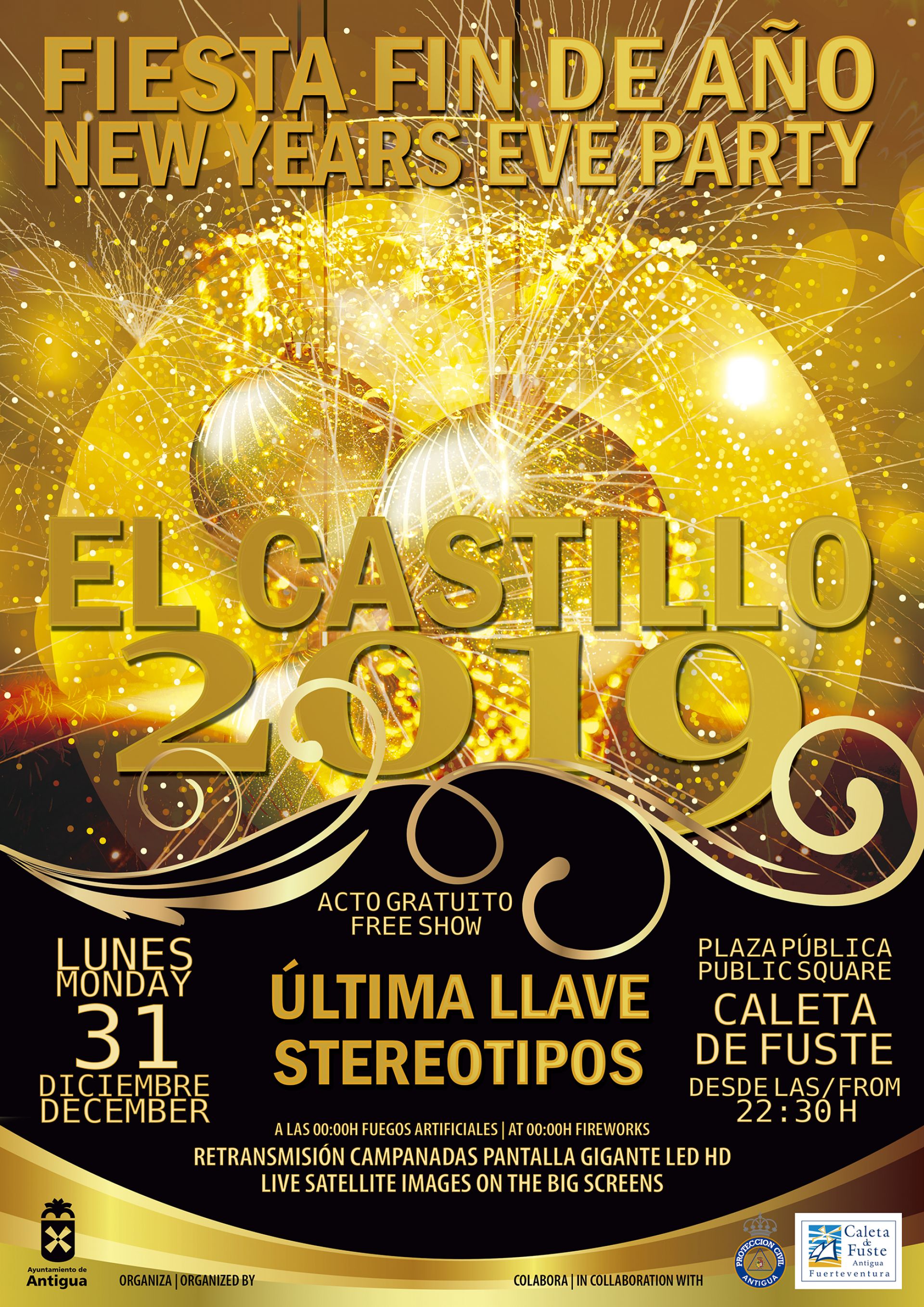 La Gran Fiesta Fin de Año en Caleta de Fuste es gratuita, ofreciendo además de muchas sorpresas a los asistentes, uvas y cotillón para dar la bienvenida al nuevo año 2019. Dos grupos protagonizarán el escenario, Ultima Llave y Stereotipos, además de un DJ que anime la noche con música de todos los tiempos y en todos los idiomas.
