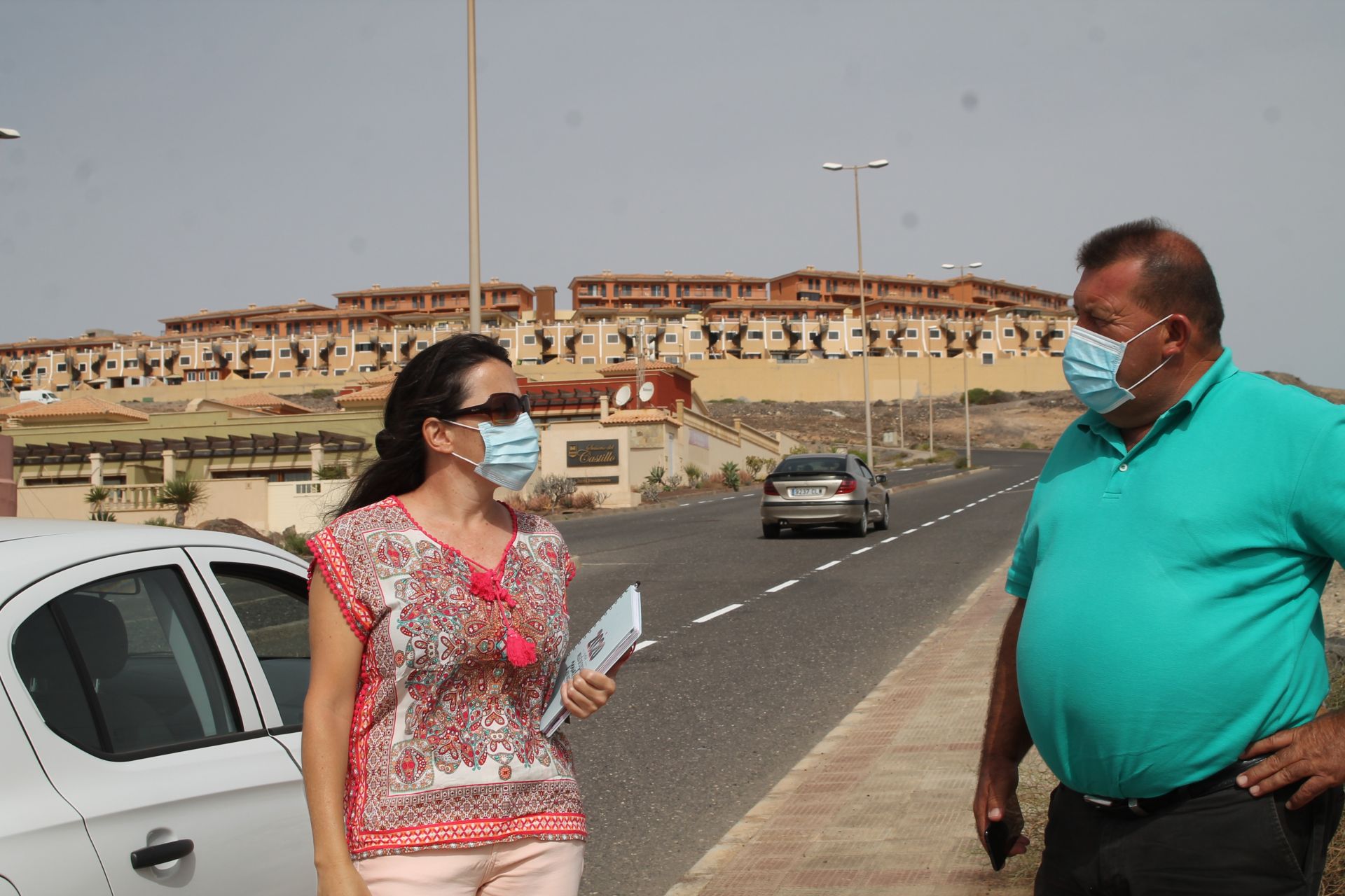 El alcalde de Antigua, Matías Peña García y la representante de la Plataforma Vecinal de Caleta de Fuste, Érica Calero, han visitado la parte alta de El Castillo, 2ª y 3ª Fase, comprobando las mejoras en la señalización vial, limpieza y acondicionamiento de las calles.