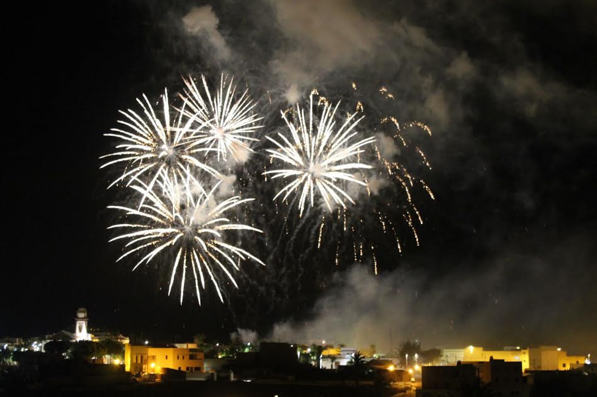 Los esperados Fuegos Artificiales de las Fiestas en honor a Nuestra Señora de La Antigua comienzan a las doce de la noche. Las Fiestas de Antigua 2016 en Honor a Nuestra Señora de La Antigua llegan a su recta final este jueves y viernes ofreciendo una Noche de los 80, la Gran Quema de Fuegos Artificiales, Verbena, Charanga, Escala en Hi-Fi y el tradicional Vino de honor al pueblo en la Plaza de Antigua.