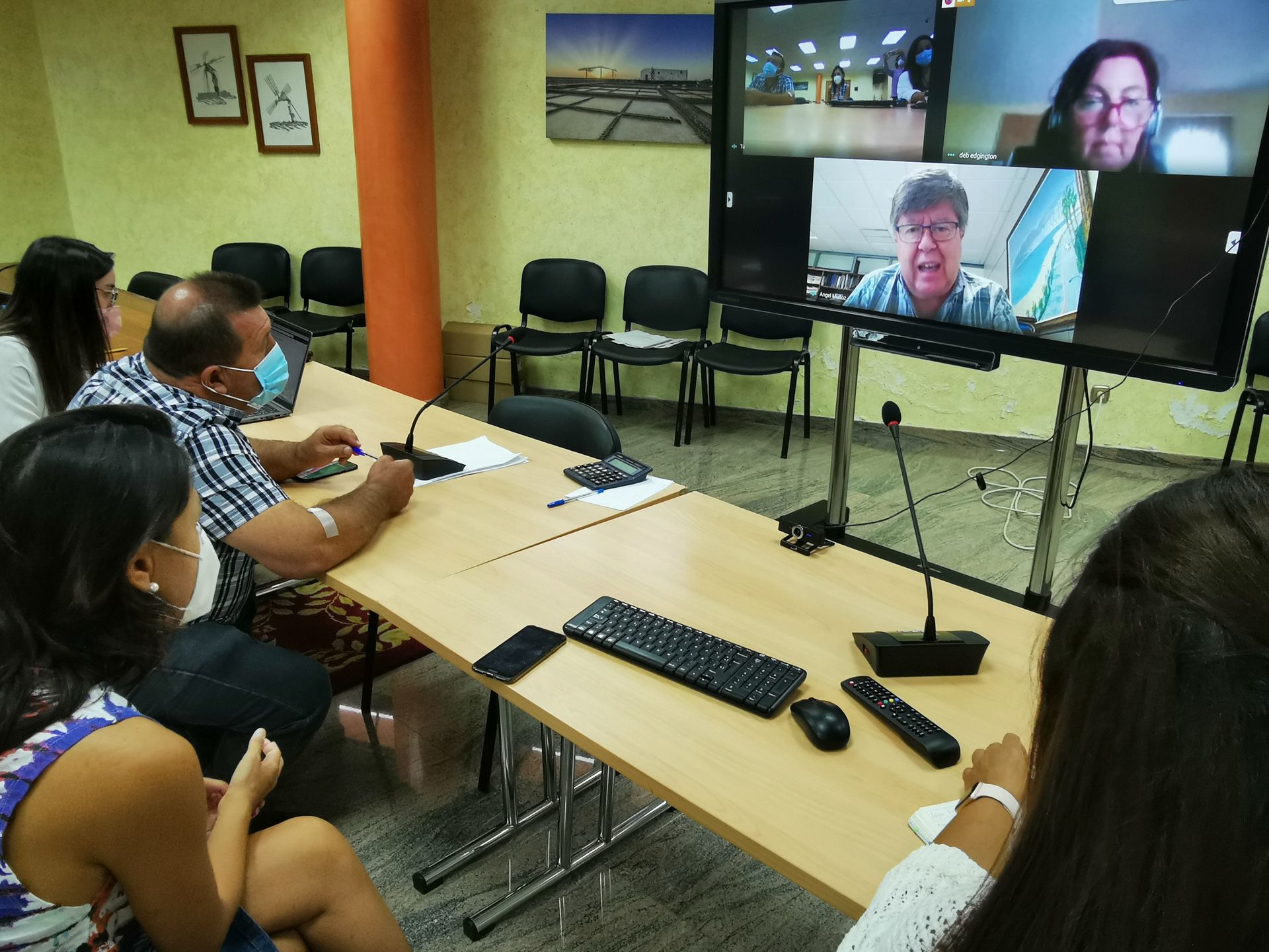El alcalde, Matías Peña, la concejala de Turismo y Playas, Deborah Edgington, la Senadora por Fuerteventura, Paloma Hernández, y la Secretaria y Arquitecta municipales, Raquel Antón y Noelia Betancor, respectivamente, han mantenido este jueves 17 de septiembre por la mañana una video conferencia con el Subdirector General de Sostenibilidad de la Costa y el Mar, Ángel Muñoz Cubillo para conocer los avances en los proyectos de Regeneración de la Playa y la Remodelación del paseo marítimo de El Castillo.