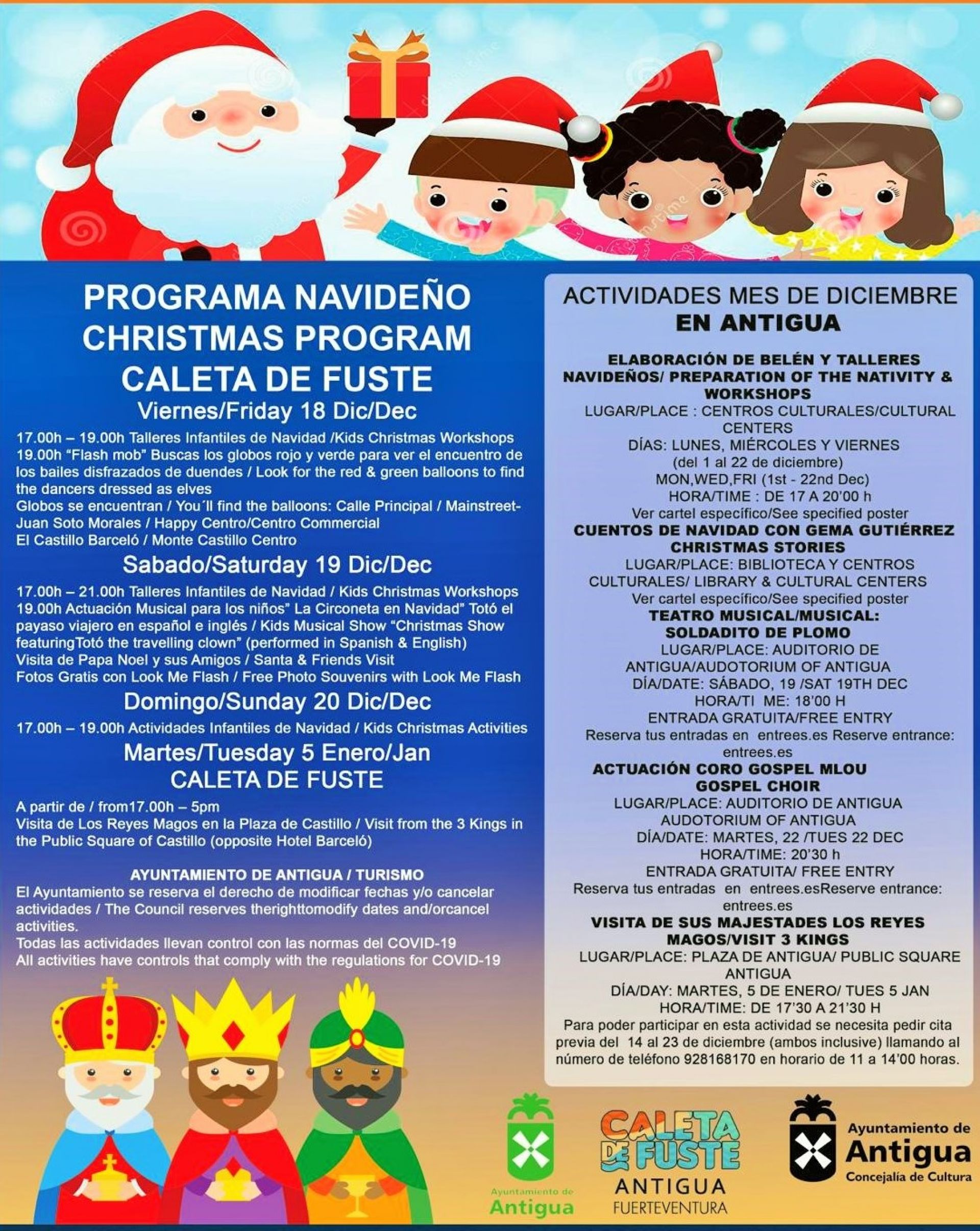 Caleta de Fuste ofrece varios días y en diferentes vías principales un programa de actividades navideñas organizadas por la concejalía de Turismo con la colaboración de la concejalía de Cultura del Ayuntamiento de Antigua.