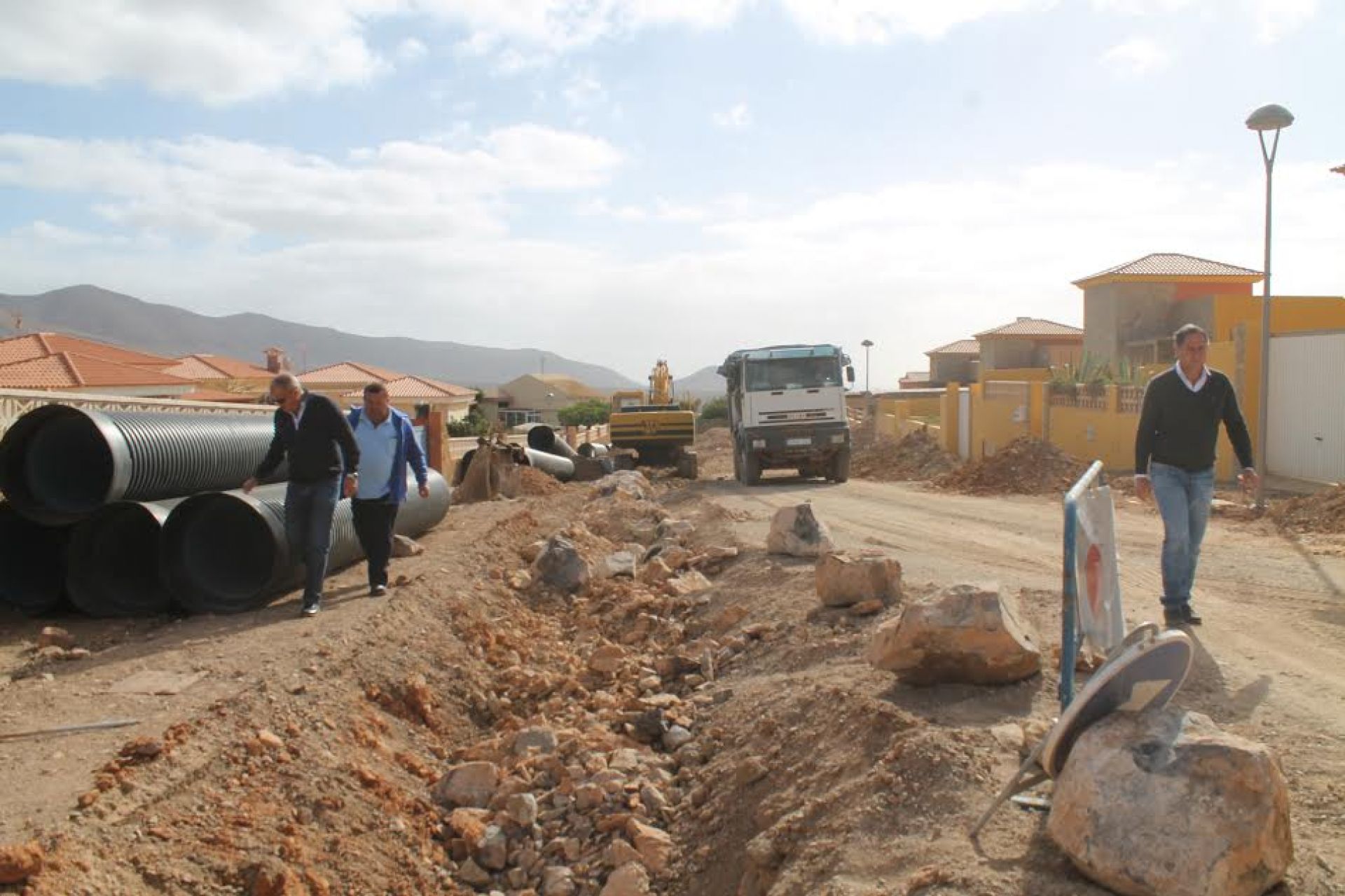 El Alcalde de Antigua, acompañado de los concejales de Obras y Servicios, Matías Peña y Urbanismo, Gustavo Berriel han visitado esta mañana los dos proyectos que se ejecutan estos días en la calle Pinajacha y la zona norte de Triquivijate mas conocida como Piedras Negras, con un presupuesto total que alcanza los 449.000 euros a ejecutar en los próximos dos meses.