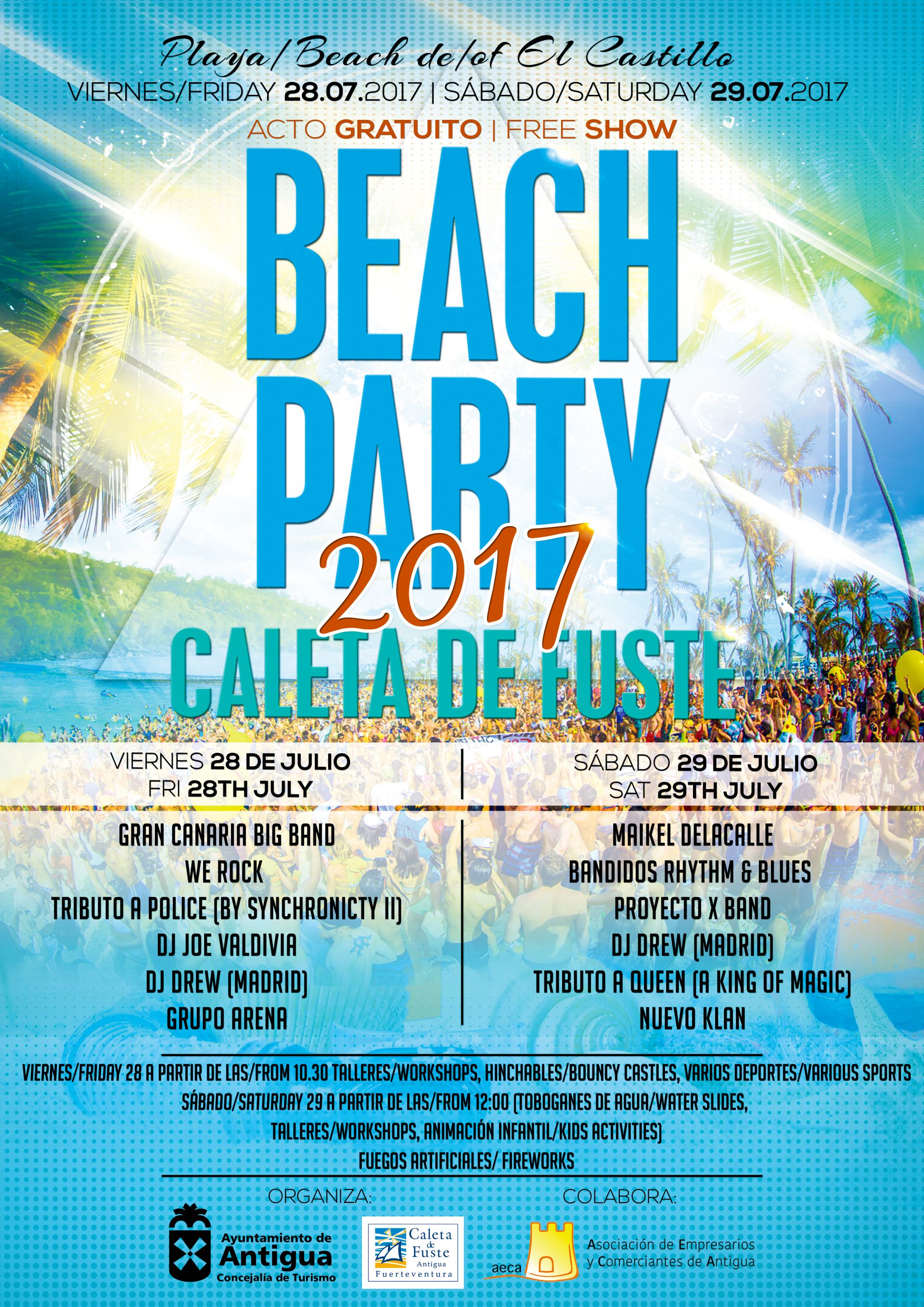 La Beach Party 2017 es la Fiesta de la Playa en Caleta de Fuste que se celebra el próximo viernes 28 y sábado 29 de julio en la Playa del Castillo con talleres, hinchables y torneos de playa durante la mañana y por la noche, conciertos con las actuaciones de doce grupos y DJs.