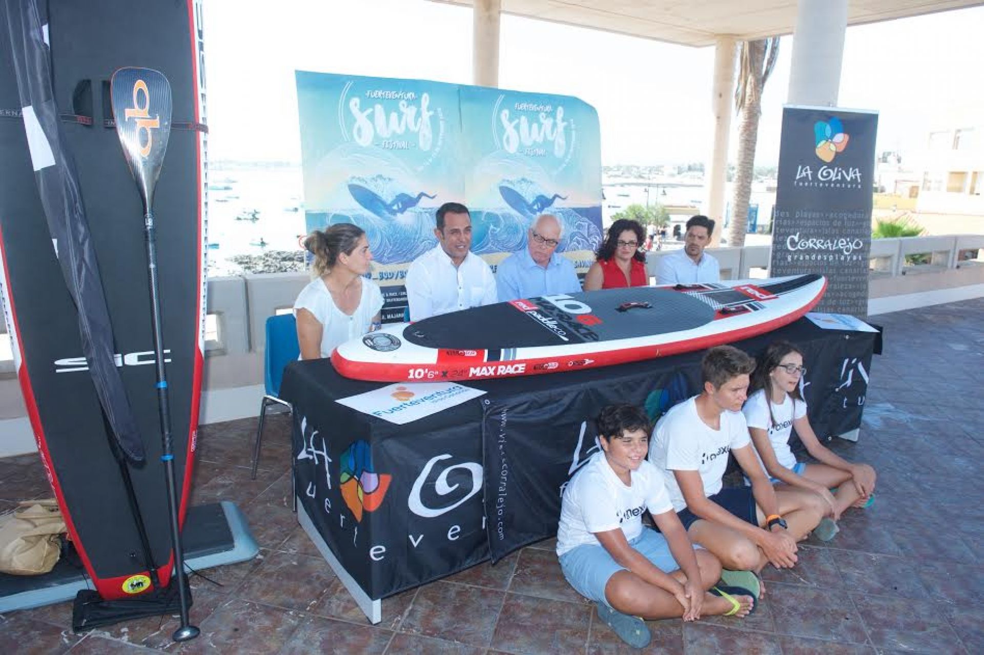 Las localidades de El Cotillo, Corralejo y Majanicho acogerán del 16 al 25 de septiembre el primer festival “Fuerteventura Surf Week”, una novedosa iniciativa conjunta entre el Ayuntamiento de La Oliva y el Patronato de Turismo majorero, que permitirá que la zona norte acoja pruebas pertenecientes al circuito nacional con presencia de competidores nacionales y europeos. Elalcalde de La Oliva, Pedro Amador, el consejero de Turismo del Cabildo, Blas Acosta, la concejala de Turismo de La Oliva, Rosa Fernández, el representante de la empresa colaboradora Pierre & Vacances, Salvatore Finocchiaro, y la directora del club Onexe, Nayra Martínez, presentaron hoy en Corralejo la programación de este festival. Pedro Amador señaló, durante su intervención, que “este primer festival de surf surge con la idea de prolongarlo en los años sucesivos”.