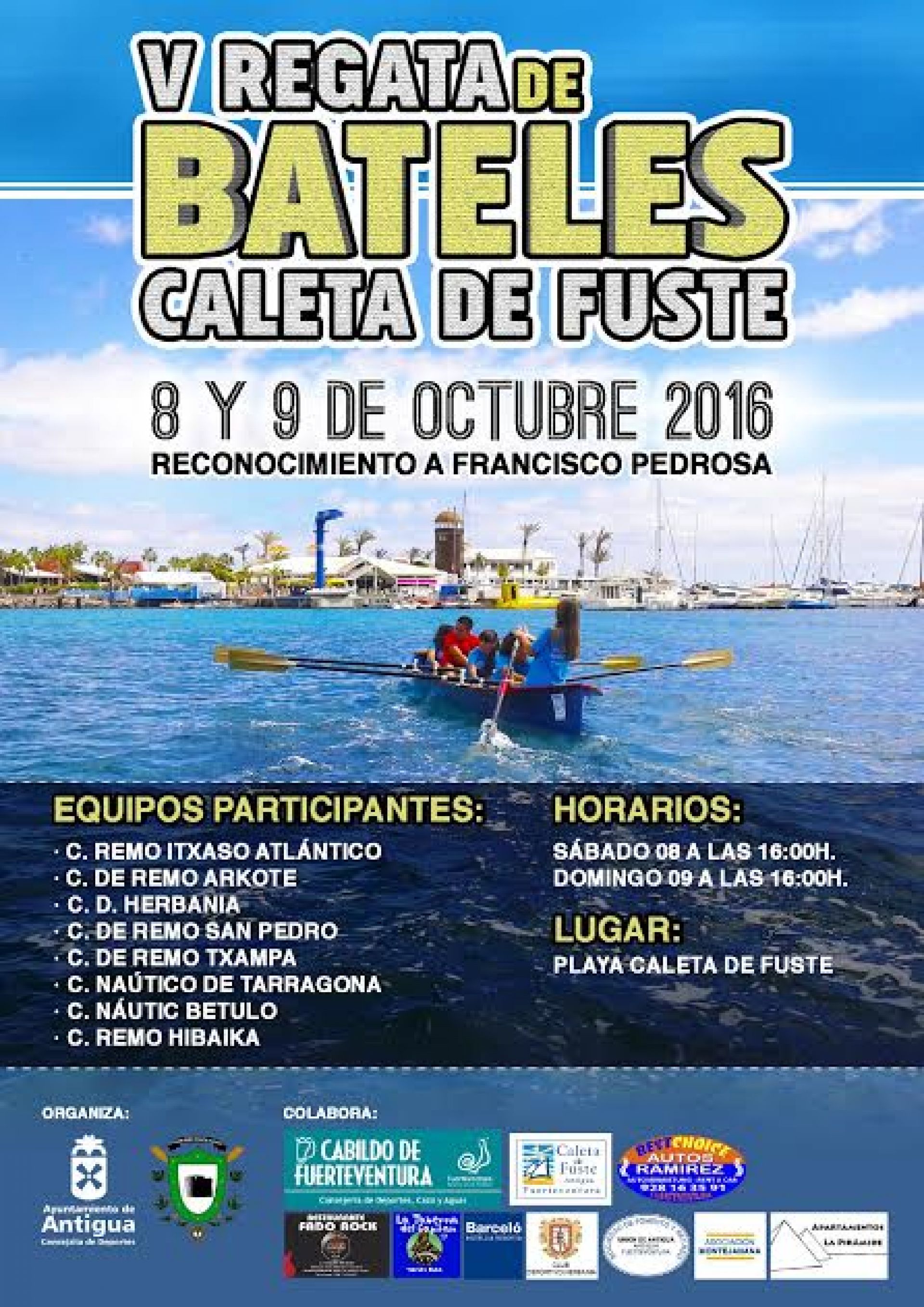 El Ayuntamiento de Antigua desde la concejalía de Deportes organiza junto al Club de Remo Txampa, la V Regata de bateles Caleta de Fuste que este año reconoce la labor meritoria del impulsor de esta competición en la isla, Francisco Pedrosa.