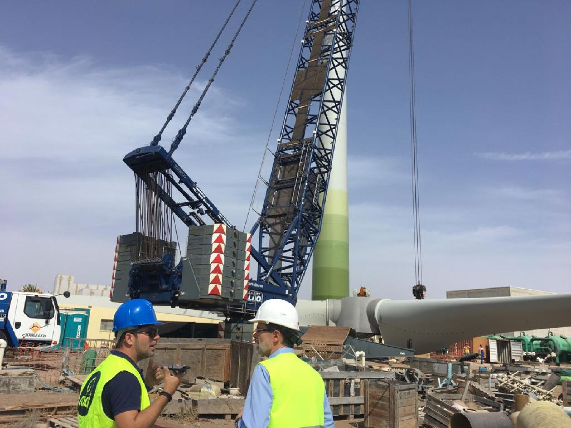 El Cabildo de Fuerteventura ha culminado los trabajos de instalación de las tres palas de un aerogenerador en la planta desaladora de Puerto del Rosario para que el 28% de la energía que se consume para potabilizar agua proceda del viento, según detalló el presidente de la Corporación insular, Marcial Morales, en una visita que realizó este domingo, día 24 de marzo, a los trabajos de instalación del molino eólico, junto al consejero insular de Aguas, Andrés Díaz. "Supone un paso importante en la apuesta de Fuerteventura por las energías renovables para que el ciclo de producción de agua provenga de fuentes no contaminantes", añadió Morales.