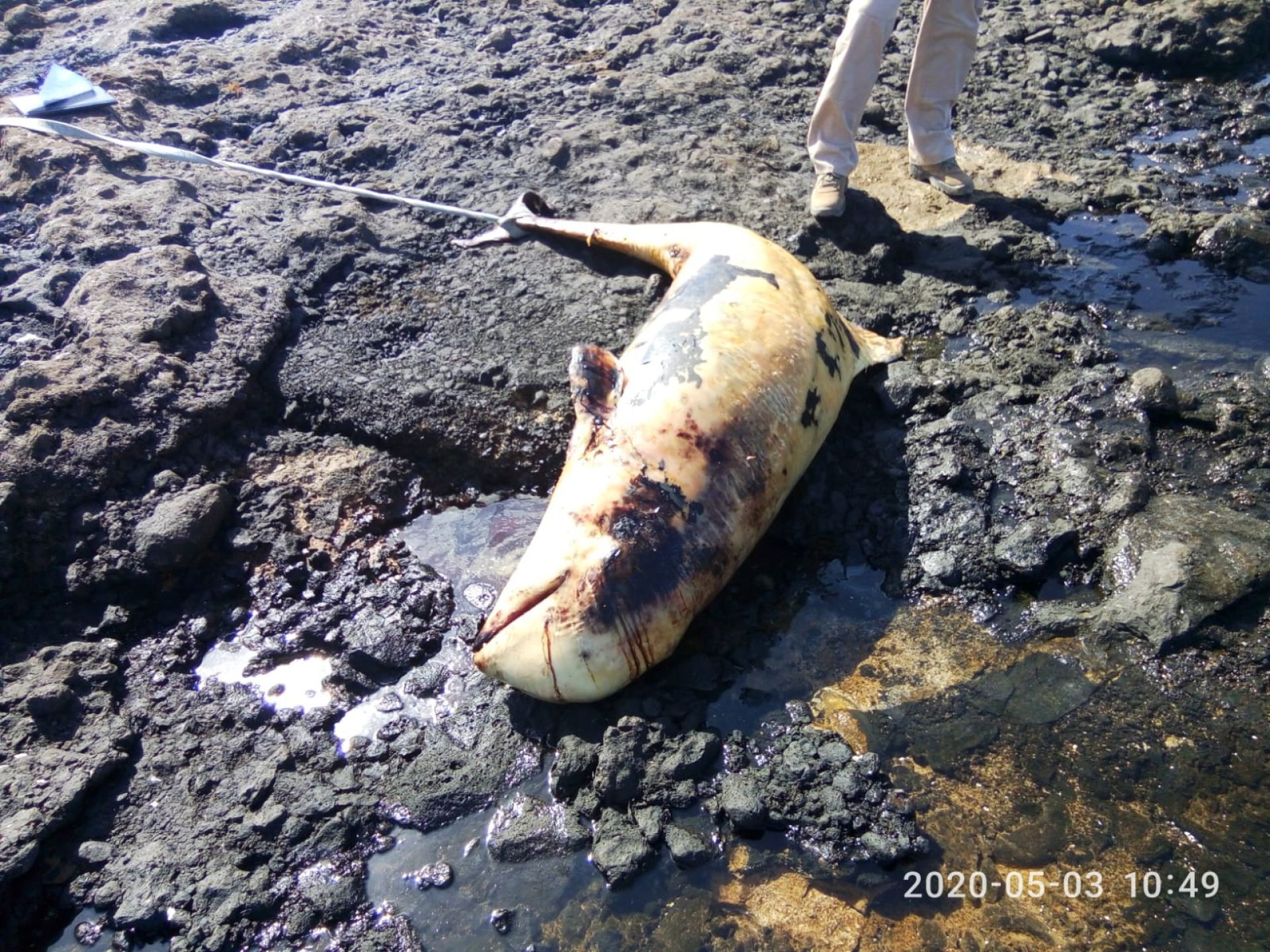 Lunes, 4 de mayo de 2020.- Un ejemplar hembra de calderón gris (Grampus griseus) de 2,47 metros de largo y unos 140 kilogramos de peso ha sido hallado varado y sin vida este sábado en la costa norte de Fuerteventura, con lo que suman ya 10 el número de cetáceos varados en la costa majorera en lo que va de año 2020.