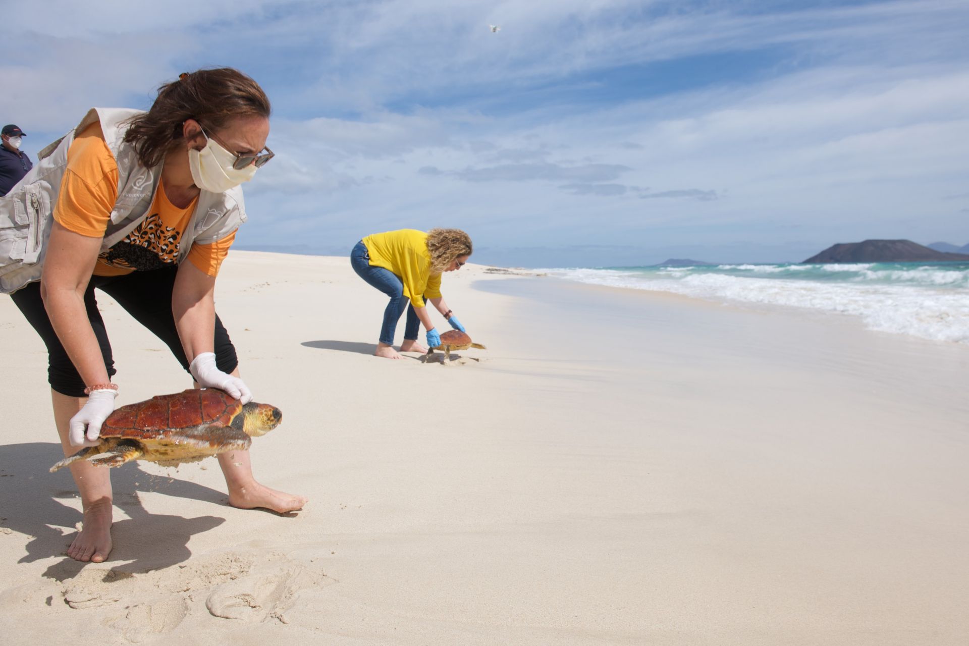 Regresan al mar cuatro tortugas halladas en las costas de Fuerteventura y tratadas en el Centro de Recuperación y Conservación de Morro Jable