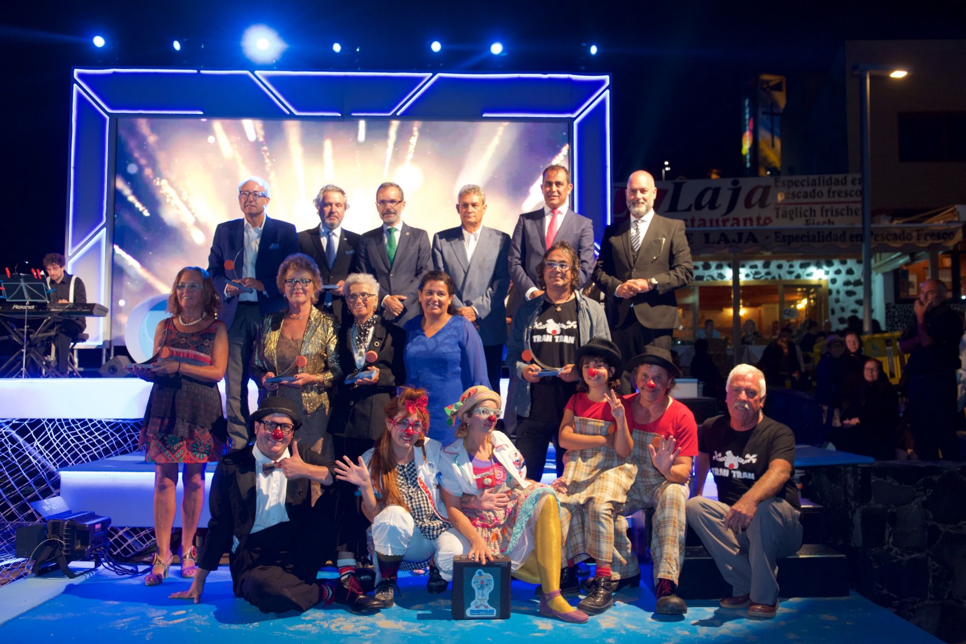 Uno de los momentos más emotivos de la noche fue el homenaje al ex cronista oficial de Fuerteventura, Gerardo Jorge Machín, recientemente fallecido. El que fuera durante décadas corresponsal de Televisión Española en la isla fue testigo de los inicios del turismo en la isla. Desde su puesto como periodista comunicó la llegada de los primeros visitantes, proyectó Fuerteventura en el exterior y reclamó a través de sus crónicas mejoras para una isla que ya había decidido que el turismo era su futuro. La familia del periodista fue la encargada de recoger la placa: el Premio “In memoriam”, mientras sonaba el Trío Marilina Dobreva.