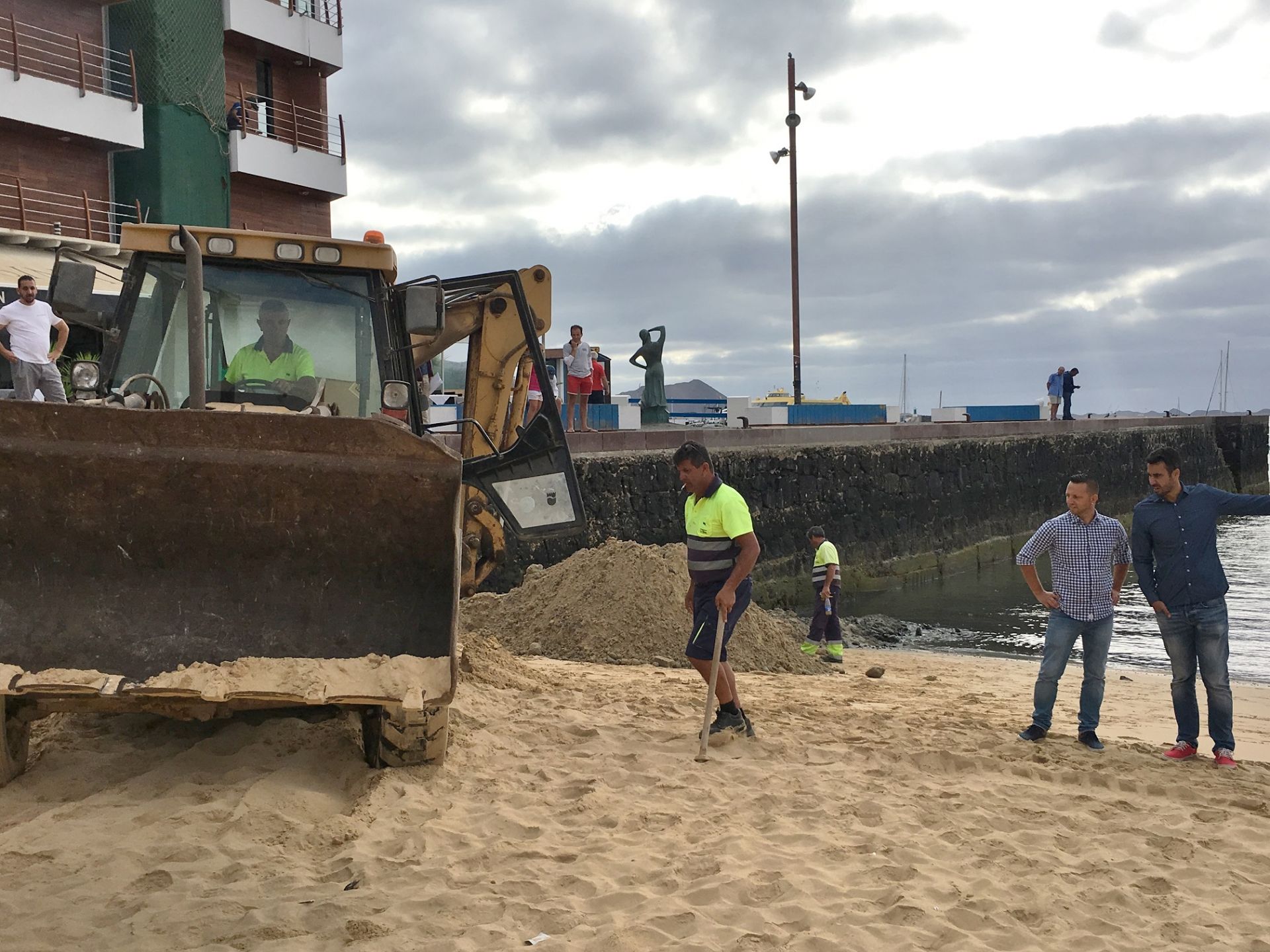 La Oliva, a 27 de junio de 2018. El Ayuntamiento de La Oliva ha iniciado el programa de actuaciones acordado con la Dirección de Área de Salud de Fuerteventura para solucionar la situación en el Muelle Chico de Corralejo, excavando en la misma playa en busca de algún posible foco de vertido desconocido hasta ahora.