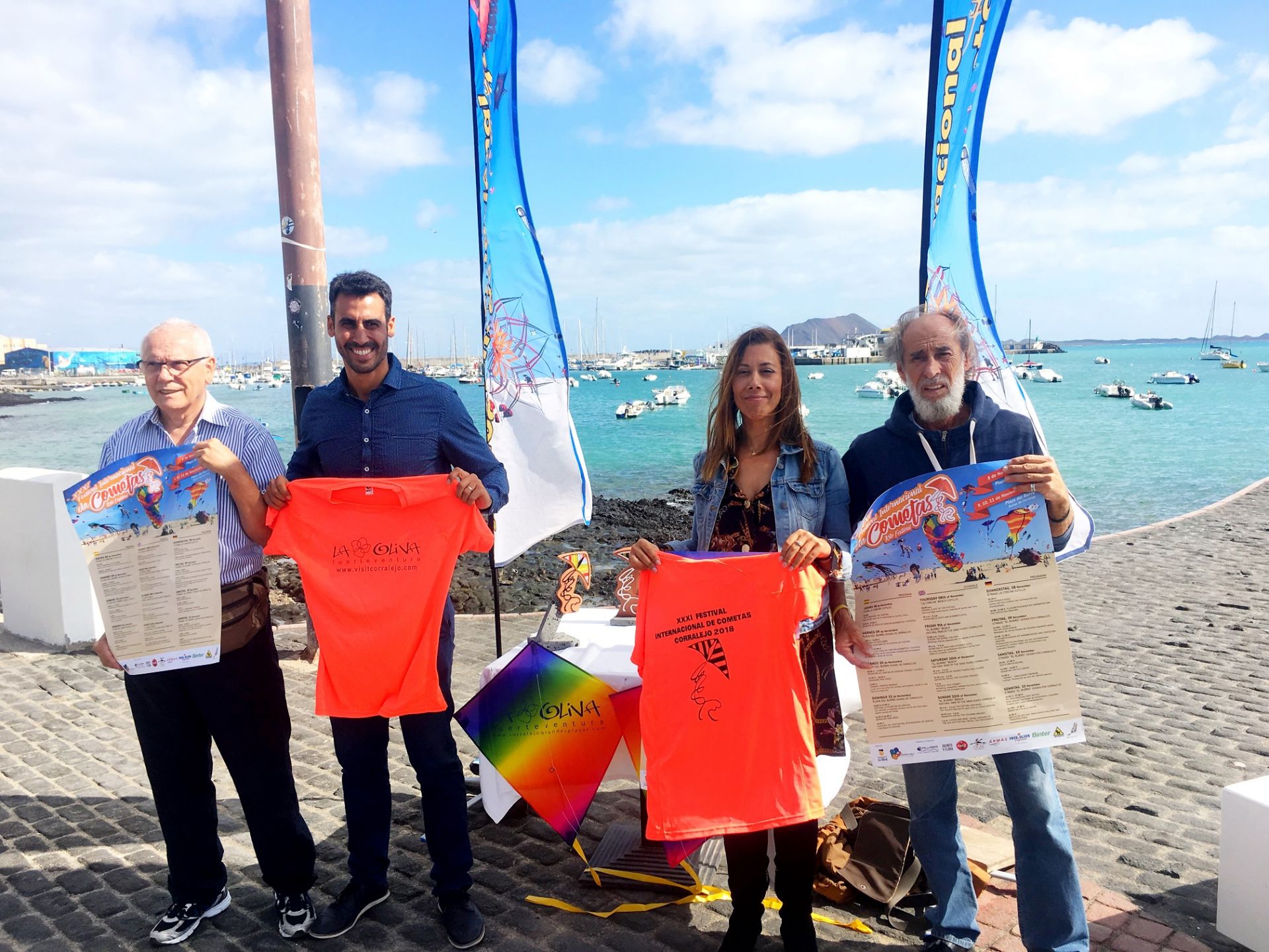 El Ayuntamiento de La Oliva, desde la Concejalía de Turismo, organiza una vez más este Festival Internacional de Cometas, cuyo programa se dio a conocer hoy en el Muelle Chico de Corralejo, en un acto en que intervinieron el alcalde de La Oliva, Isaí Blanco, la concejala de Turismo, Sandra González, y Jacinto Rodríguez y Claudio Azzali por parte del colectivo de cometistas ligado a la organización.