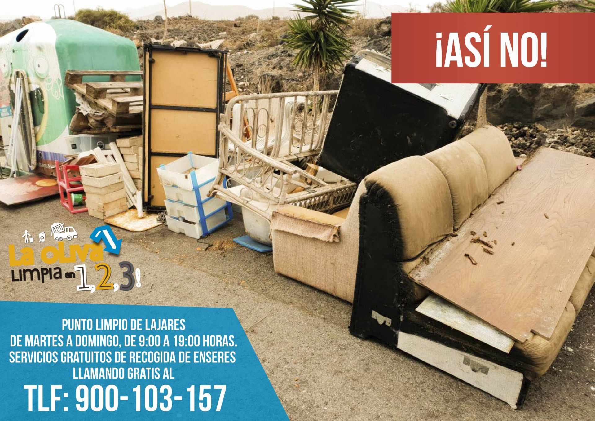 Recogida en todo el municipio de La Oliva, hasta un máximo de 5 elementos (mobiliario, electrodomésticos, colchones, etc.).