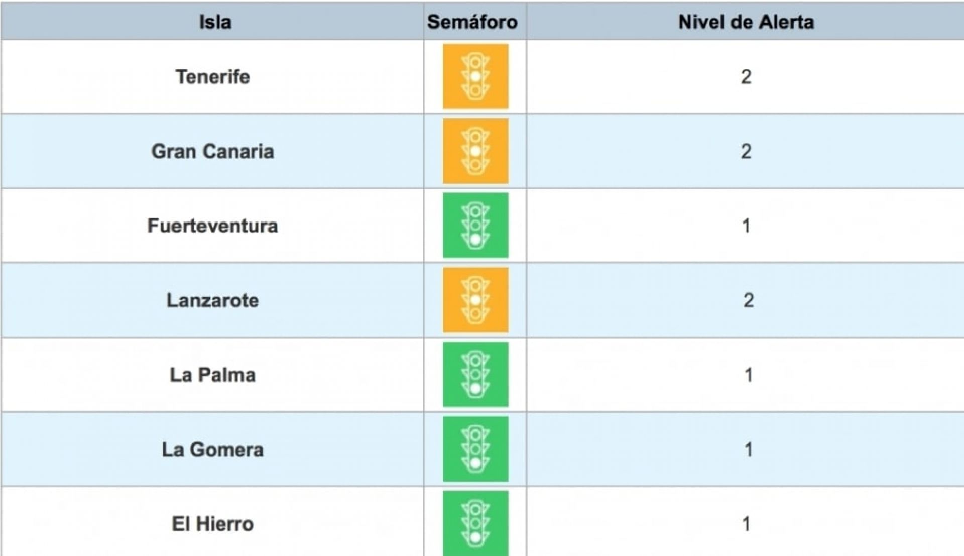 · Tenerife, Gran Canaria y Lanzarote continúan en nivel 2; y La Gomera, La Palma y Fuerteventura, en nivel 1