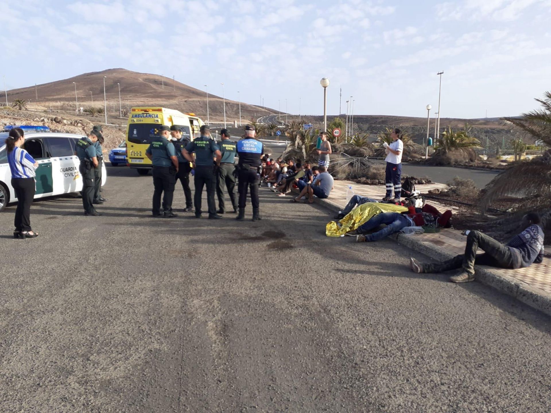 Los agentes desplazados encontraron a siete personas en las inmediaciones de la autovía del sur de la Isla y avisaron de inmediato a la Guardia Civil, que realizó una batida por la zona, donde encontraron a otros 15 migrantes, todos ellos varones, que fueron ubicados temporalmente en los aparcamientos del barranco de Mal Nombre, a la espera de la llegada de la Policía Nacional, los servicios de urgencias y Cruz Roja.