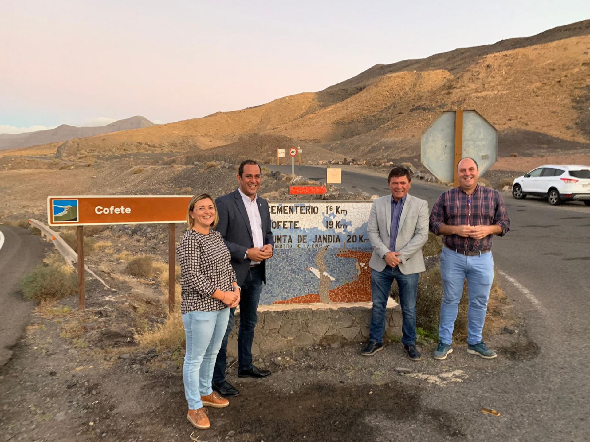 El alcalde de Pájara, Pedro Armas; la concejala de Obras Municipales y Obras Públicas, Lucía Darriba, y el consejero de Infraestructuras, Ordenación del Territorio, Coordinación con los Municipios y Servicios Generales del Cabildo de Fuerteventura, Sergio Lloret, han visitado las obras de mantenimiento de la carretera entre Morro Jable, Cofete y Punta de Jandía.