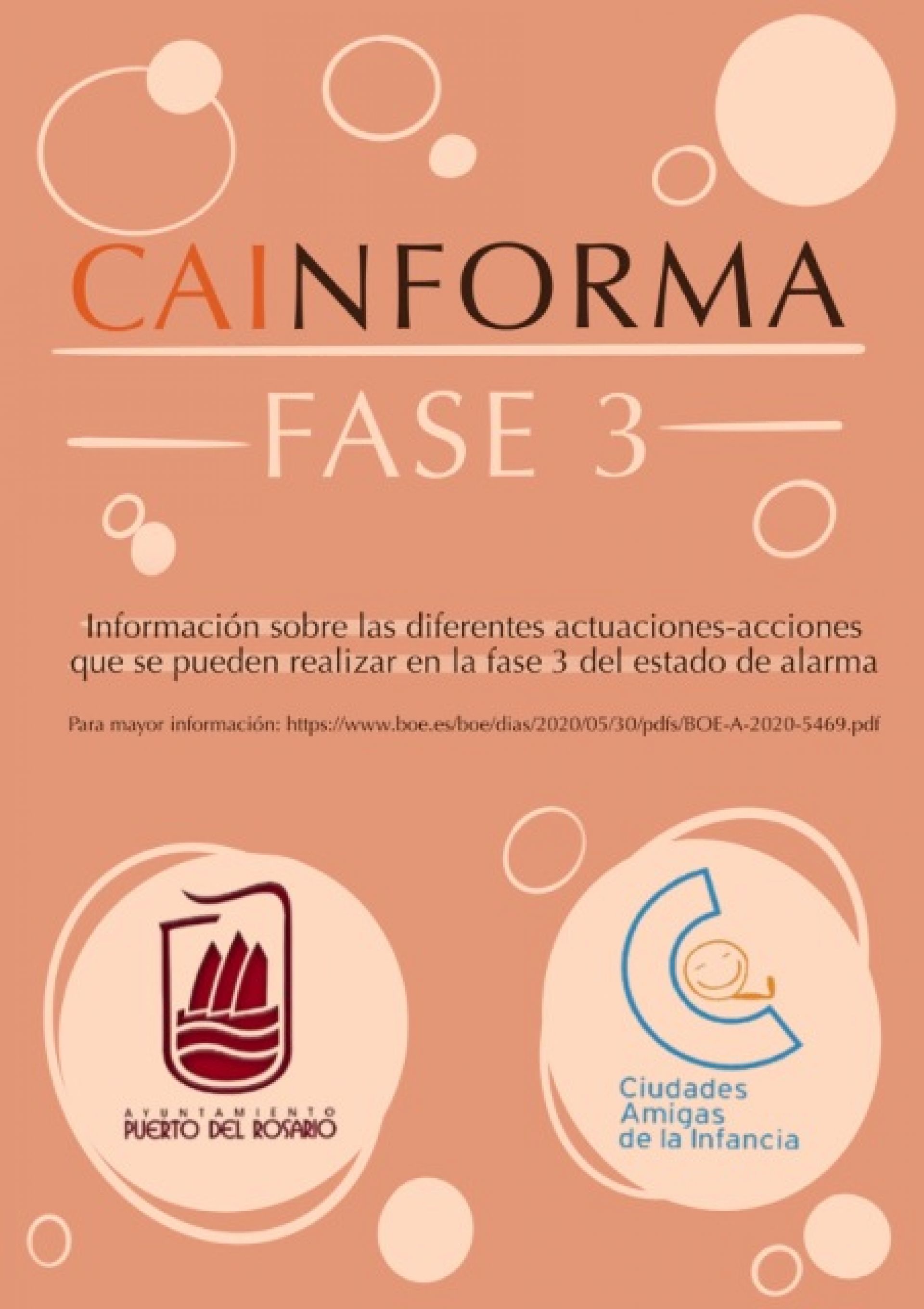 La fase 3 de la desescalada comienza hoy, lunes 8 de junio, en casi toda España. Puerto del Rosario, por su parte, continúa ofreciendo a la población de la capital portuense imágenes didácticas y pedagógicas con información sobre las diferentes acciones que se podrán realizar en esta nueva fase, gracias a la colaboración de Mar Díaz Saavedra, una adolescentede 16 años y representante del proyecto Ciudad Amiga de la Infancia del municipio de Puerto del Rosario.