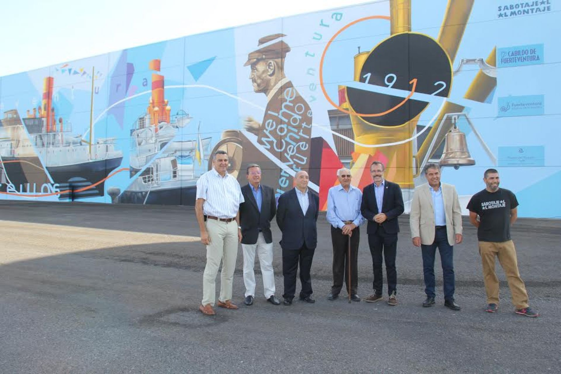 El Correíllo de La Palma ya tiene un pequeño homenaje en un mural que ocupa 945 metros cuadrados de una pared del muelle de Puerto del Rosario. Matías Mata, de Sabotaje al Montaje, es el autor de este mural con el que el Cabildo de Fuerteventura ha embellecido una de las puertas de entrada a la Isla vía marítima tanto de cruceros como de barcos de transporte de viajeros entre las islas dentro de las acciones del Plan de Embellecimiento Insular…Fuerteventura, te queremos bonita. "Matías Mata ha convertido un viejo muro de hormigón en un elemento de embellecimiento. Una bienvenida a los miles de cruceristas que nos visitan y eligiendo además como motivo el Correíllo de La Palma, con lo que supuso para la navegación en las islas", manifestó hoy, martes, día 13 de septiembre, el presidente del Cabildo de Fuerteventura, Marcial Morales, durante la presentación del mural.