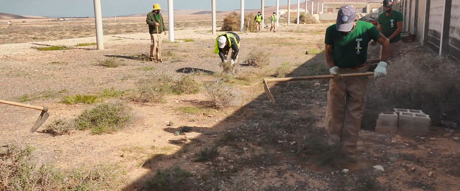 · El alumnado-trabajador del proyecto Puerto Brilla II acomete una limpieza integral del pueblo y ayuda en tareas de rehabilitación del futuro Centro de selección de machos sementales de raza majorera de la isla