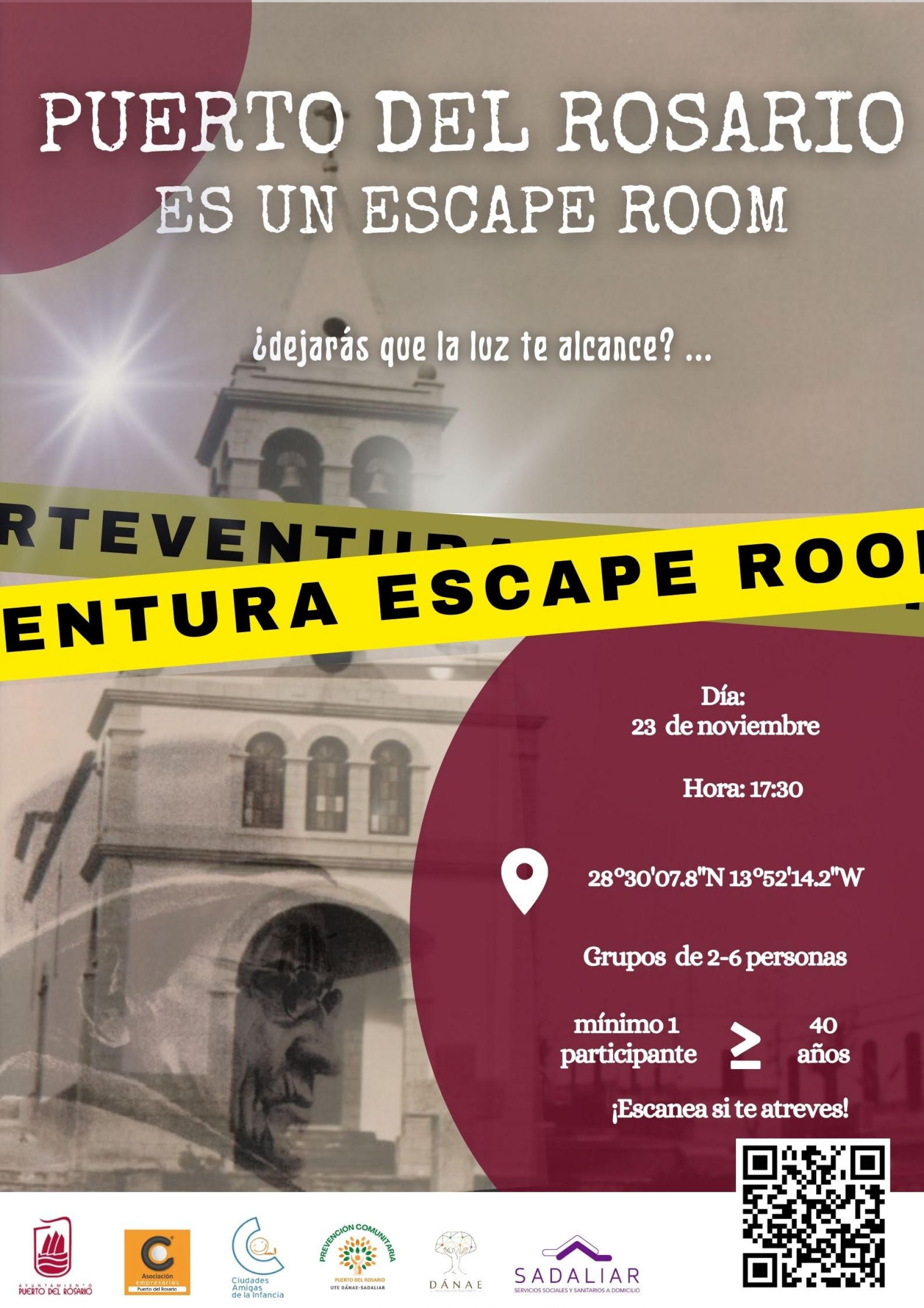 La Concejalía de Servicios Sociales del Ayuntamiento de Puerto del Rosario organiza a través de la UTE Dánae- Sadaliar en el marco del “Programa de Prevención e Intervención Comunitaria” y en colaboración con la Asociación de Comercios de la Zona Centro: el Primer Escape Room al aire libre por la ciudad portuense que tendrá lugar el próximo jueves 23 de noviembre a las 17.30 h en 28°30'07.9"N 13°52'14.2"W.