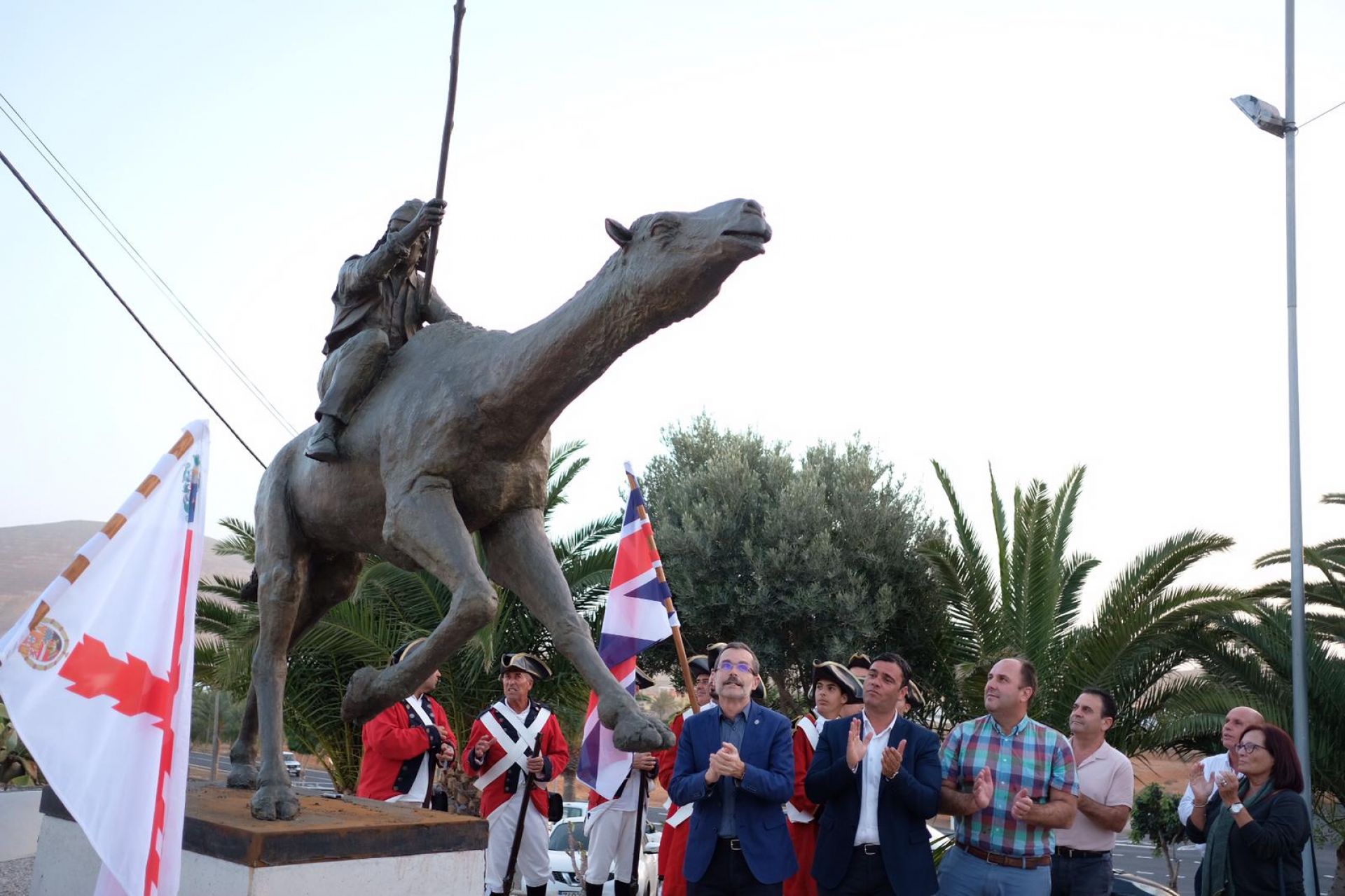Amancio González destacó además el dinamismo de la escultura. “Para potenciar ese dinamismo, la figura del camello tiene las dos patas delanteras en el aire y el personaje tiene una actitud agresiva, con el traje rural y un palo en la mano, para reflejar el momento en el que el majorero se sintió en la necesidad de defender su territorio”, dijo el autor de la obra.