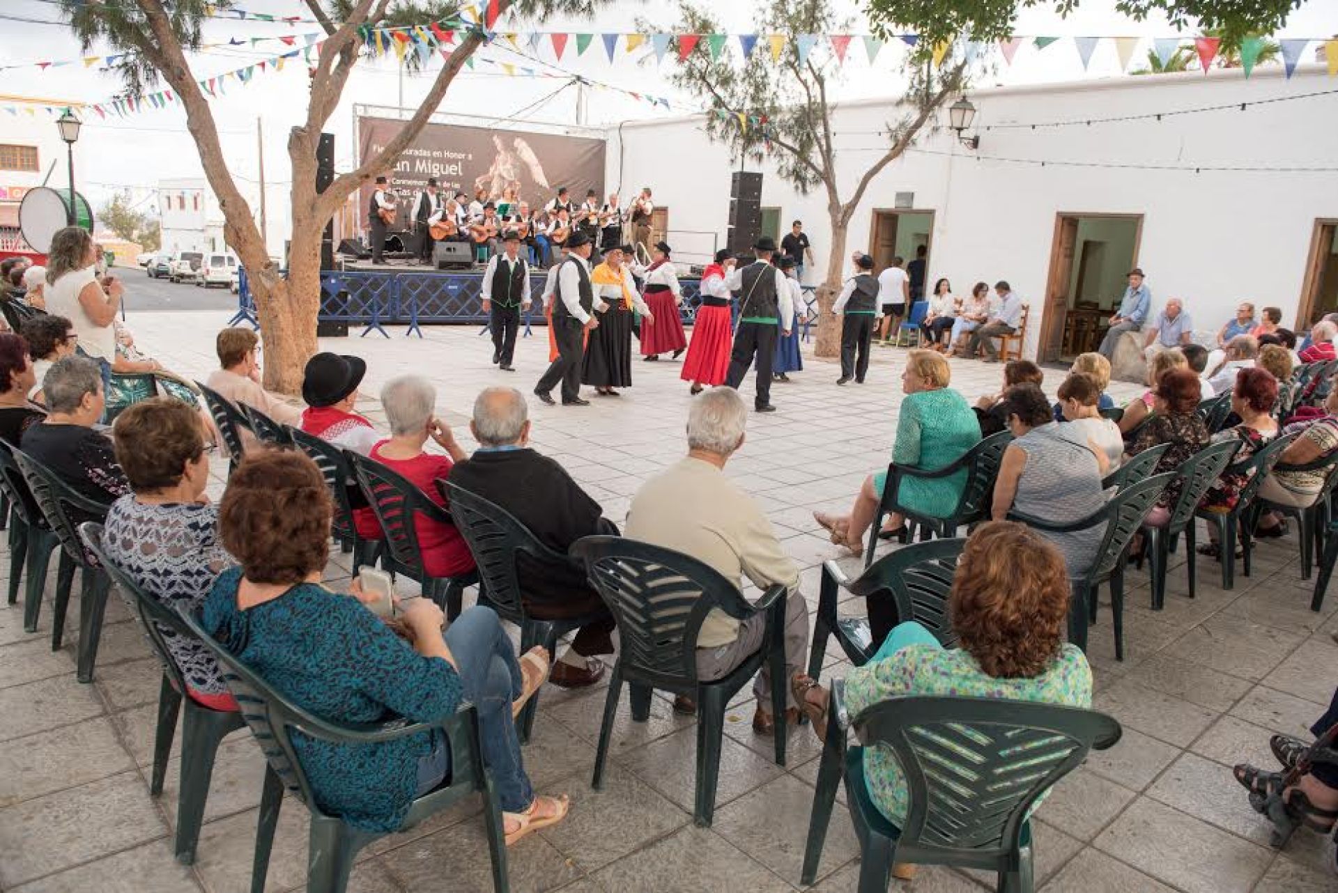 La Plaza de San Miguel, en Tuineje, acogió ayer domingo, 2 de octubre, un Encuentro de Mayores con motivo de la celebración del Día del Mayor. Aprovechando el marco que ofrece las Fiestas en Honor a San Miguel Arcángel, los usuarios de los Centros de Mayores de Gran Tarajal y Tuineje participaron en una jornada donde la música y el baile fueron los protagonistas, gracias a la presencia de la Rondalla del Centro de Mayores de Gran Tarajal; la Rondalla Manitaga, de Tuineje; la Rondalla Muelle Nuevo, de Gran Tarajal; y la Parranda Bernegal. Junto a la música, los asistentes también pudieron disfrutar de un brindis organizado por la Concejalía de Mayores de Tuineje.