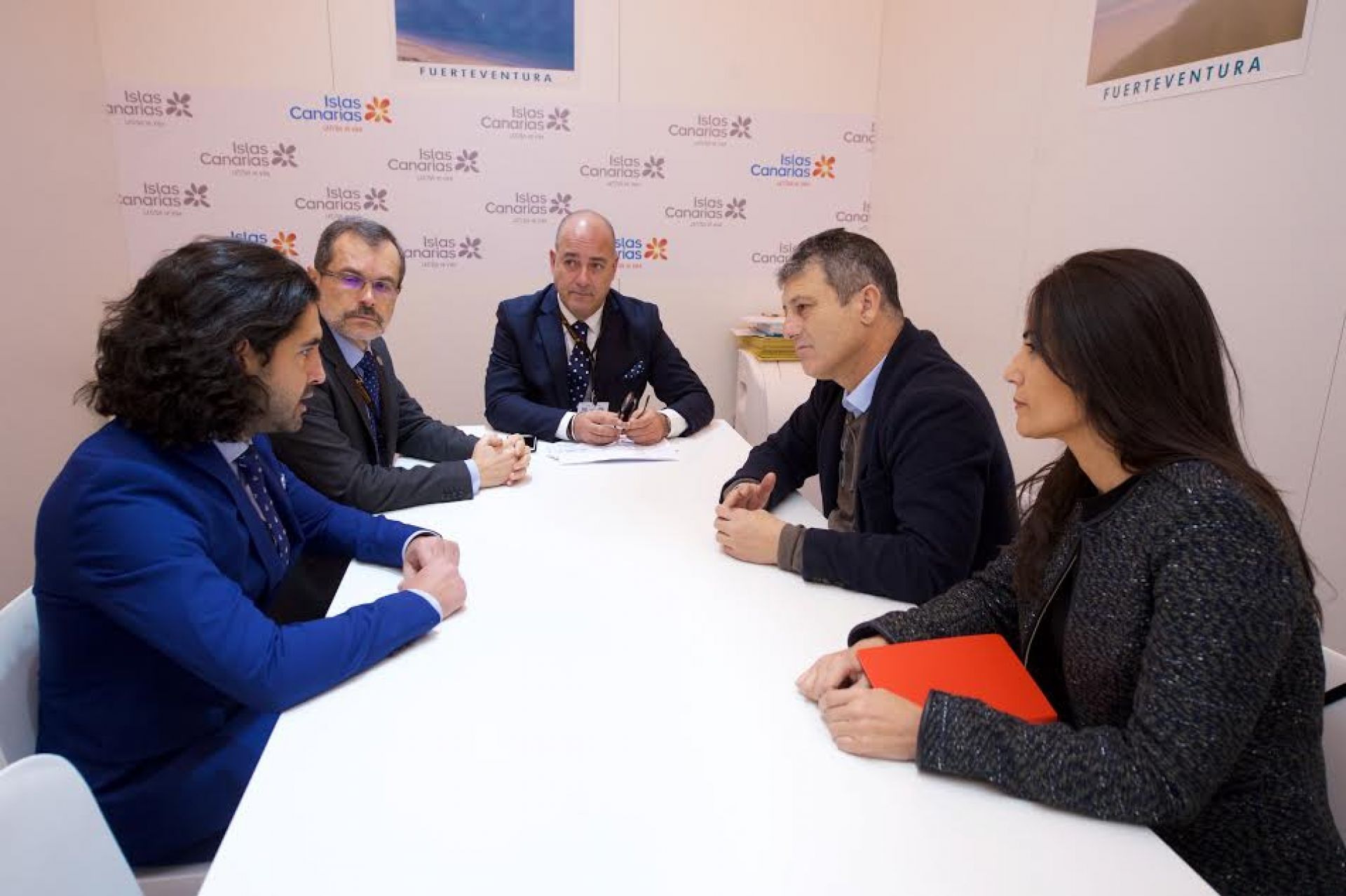 El Ayuntamiento de Tuineje, en coordinación con el Patronato de Turismo de Fuerteventura, mantuvo esta mañana un encuentro con la empresa especializada en turismo de cruceros Nudoss.com, en el marco de Fitur 2017. La finalidad de este encuentro fue el de “mantener un primer contacto con una empresa que va a marcar un punto de partida en el objetivo de situar al puerto de Gran Tarajal en la ruta del turismo de cruceros”, explicó el Alcalde de Tuineje, Salvador Delgado, quien acudió a la reunión acompañado de la Concejala de Turismo, Lolina Negrín, además del Presidente del Cabildo de Fuerteventura, Marcial Morales; el Gerente del Patronato de Turismo, Moisés Jorge; y Hugo Iglesias en representación de la empresa,.