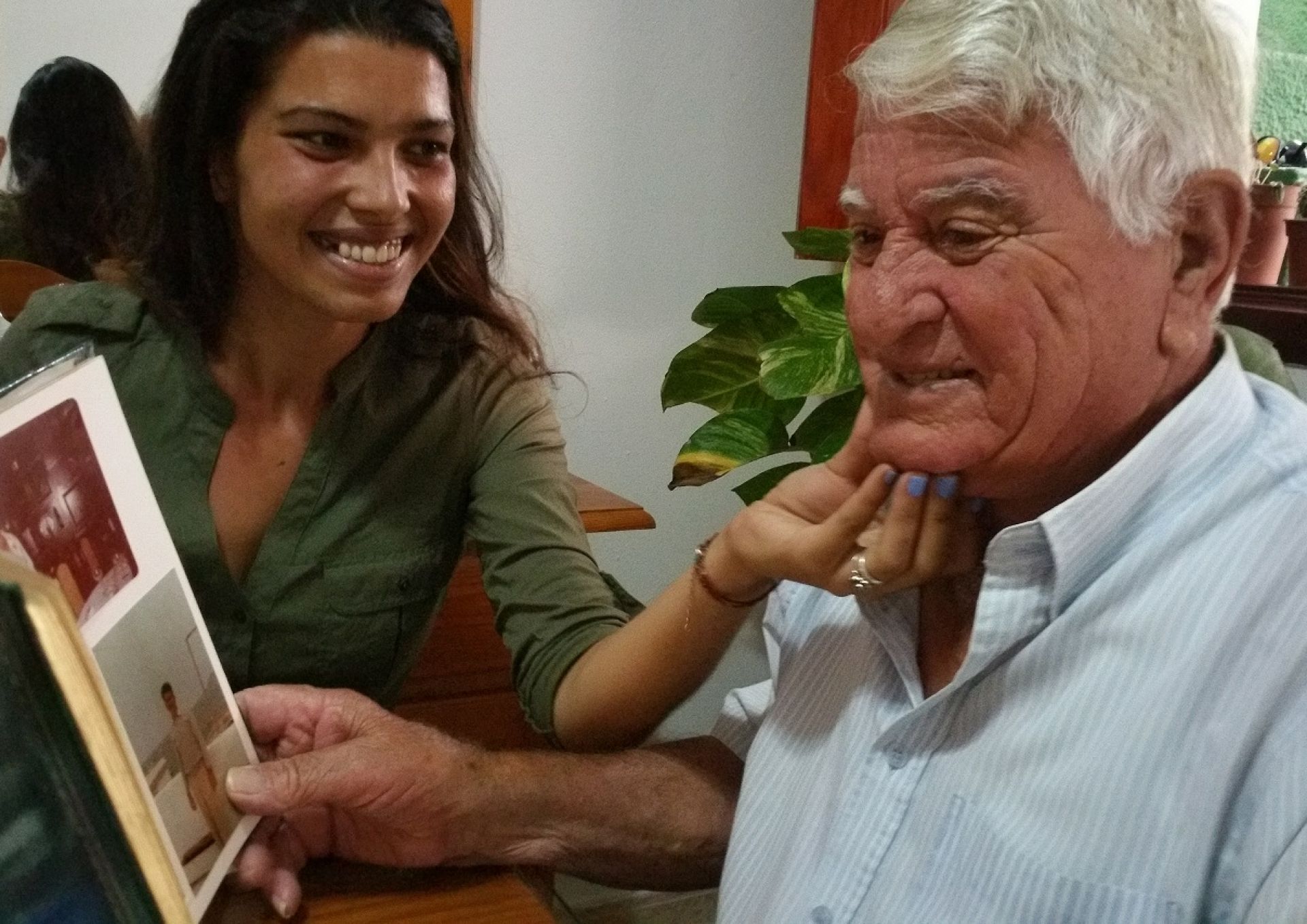 Hemos pasado una tarde entera hablando con Julián, sobre su vida y sobre el pueblo, como era, como es. Nos quedan muchos recuerdos que contar, entre tanto salimos a la puerta de su casa y al muelle chico para hacer unas fotos en las que Kyara se pone muy orgullosa al lado de su tío Julián.