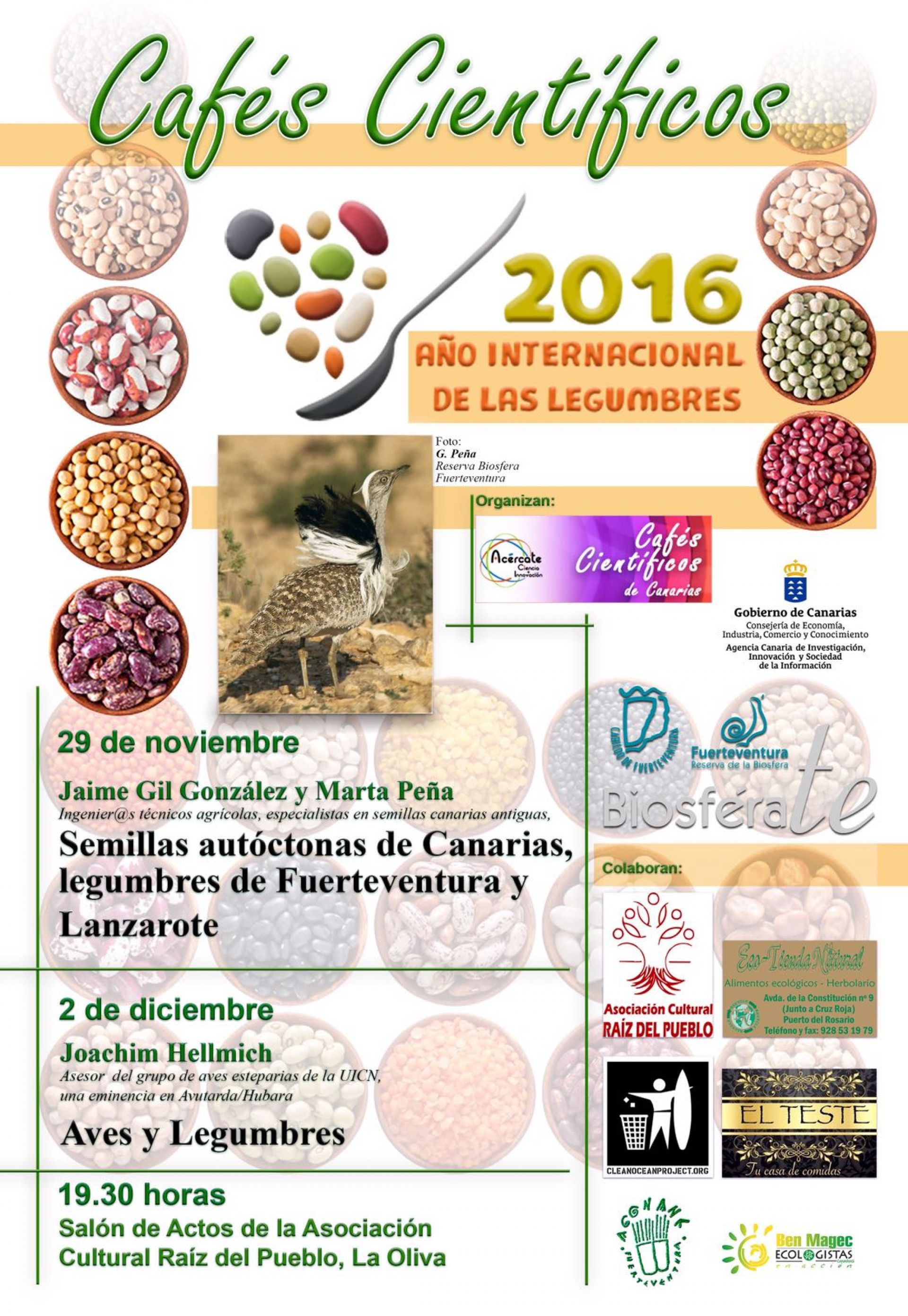 Los Cafés Científicos de Canarias están organizados dentro del programa de “Acércate a la Ciencia y a la Innovación” por la Consejería de Economía, Industria, Comercio y Conocimiento a través de la Agencia Canaria de Investigación y Innovación y Sociedad de la Información. Colaboran el Cabildo Insular de Fuerteventura y Lanzarote. Así como Raíz del Pueblo, Tienda Natural, El Teste, Clean Ocean Projet y Agonane –Ecologistas en Acción/ Ben Magec.