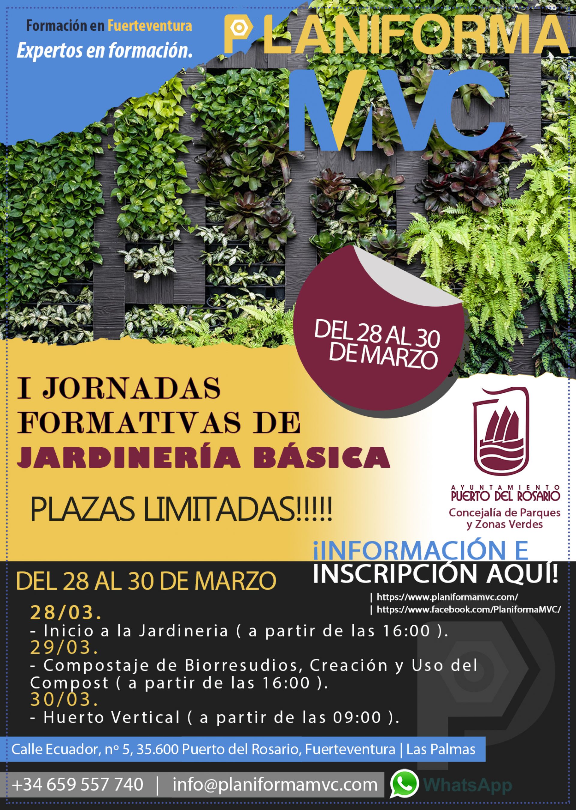El Ayuntamiento de Puerto del Rosario, a través de la concejalía de Parques y Zonas Verdes que dirige el edil Carlos Rodríguez, impulsa las “I Jornadas Formativas en Jardinería Básica” que se llevarán a cabo desde el próximo día 28 al 30 de marzo, ambos inclusive, están dirigidas a la población del municipio con inquietud por la jardinería, sin ser requisito el tener conocimientos previos en la materia.